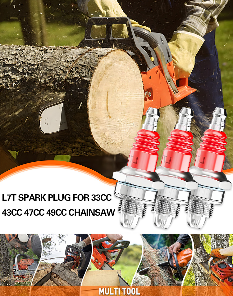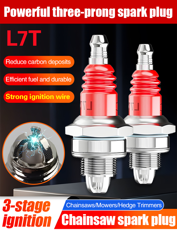 [2db]🔥L7T háromkarmos gyújtógyertya láncfűrészekhez. Univerzális kétütemű benzinmotoros láncfűrészekhez, fűnyírókhoz és sövényvágókhoz.