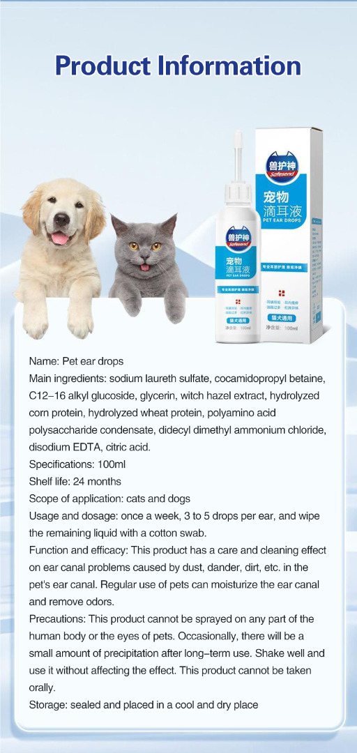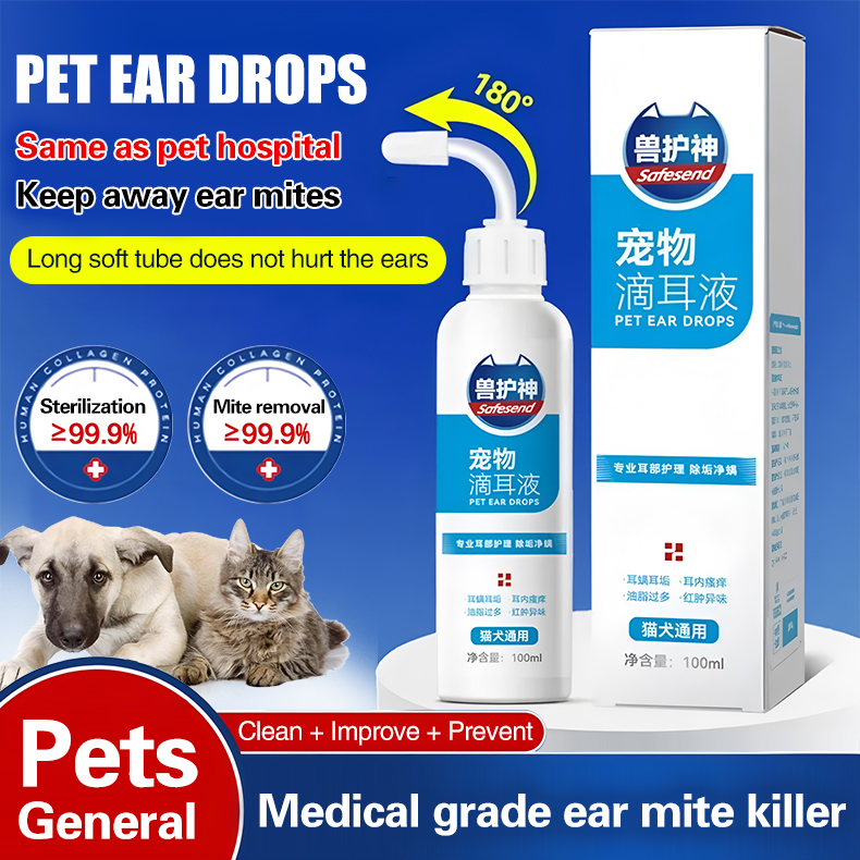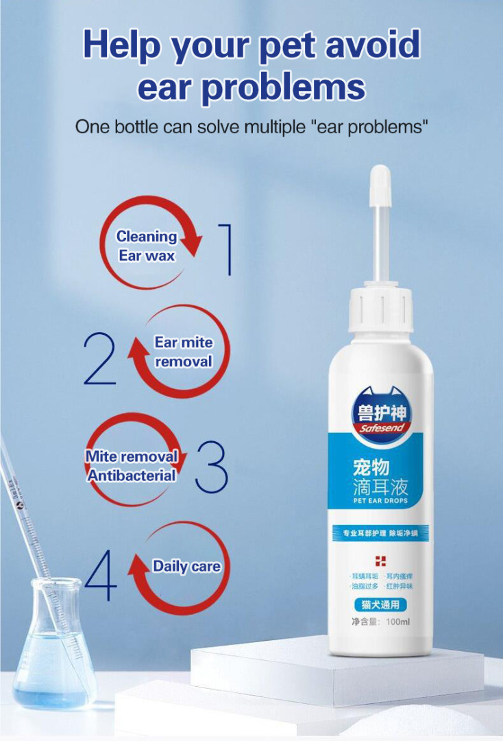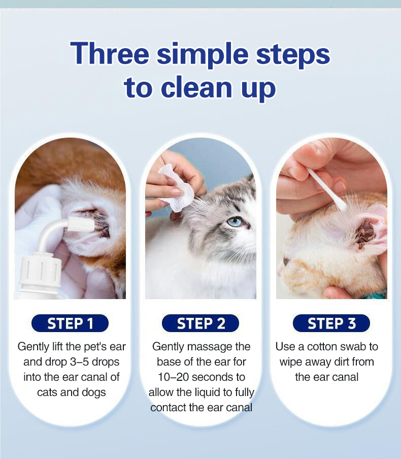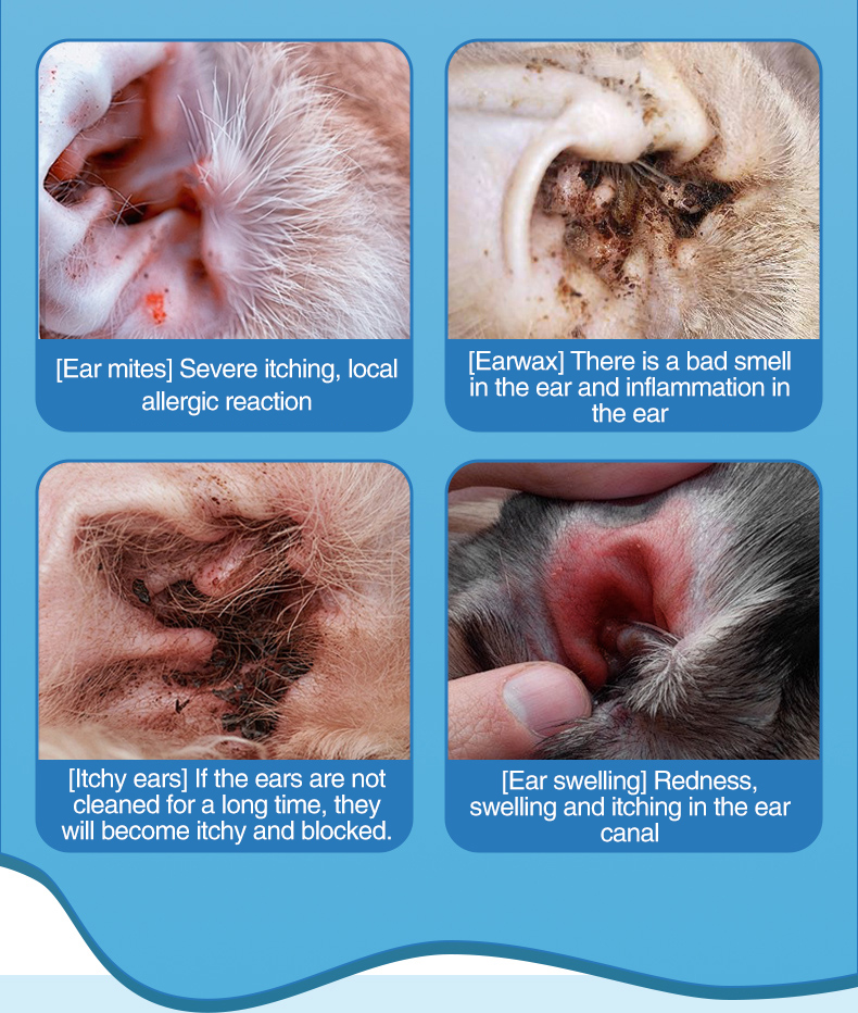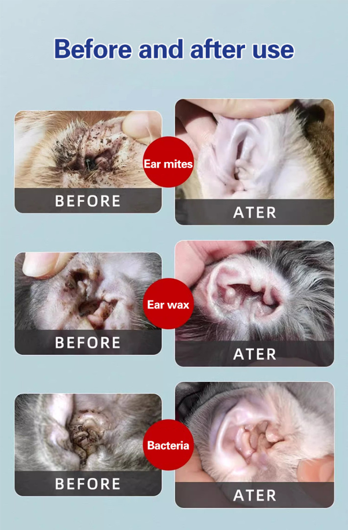 🐶🐱Univerzális fülcsepp macskáknak és kutyáknak - távolítsa el a fülatkákat, tisztítsa meg a füleket, gátolja a baktériumokat, eltávolítja a szagokat
