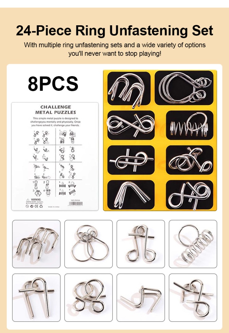 🧠 IQ Toys oktató szellemi játékok, fém kirakók, fejtörők