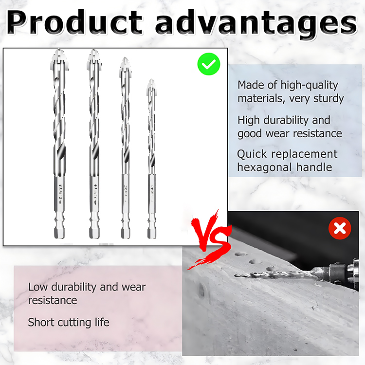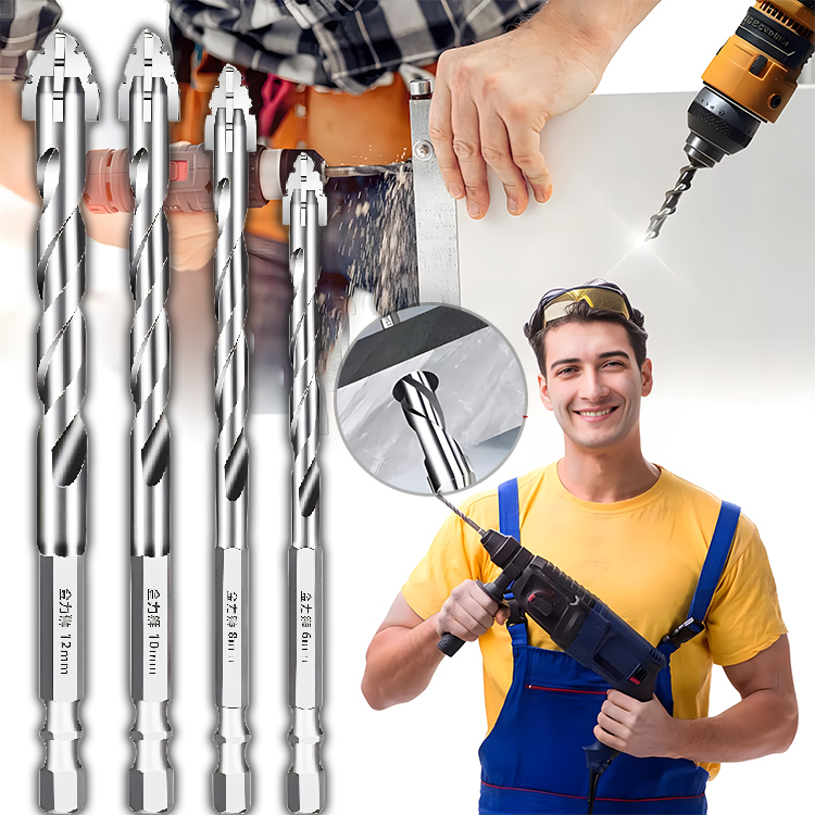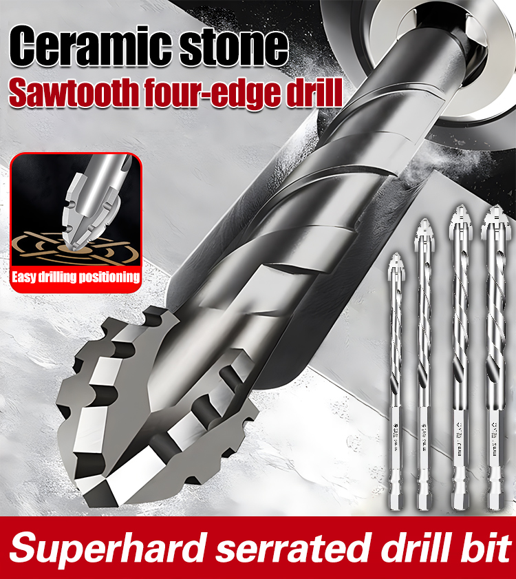 【6+8+10+12mm】 Az új négyélű volfrámacél excenterfúró, amely alkalmas csempe, beton, márvány és üveg száraz fúrására