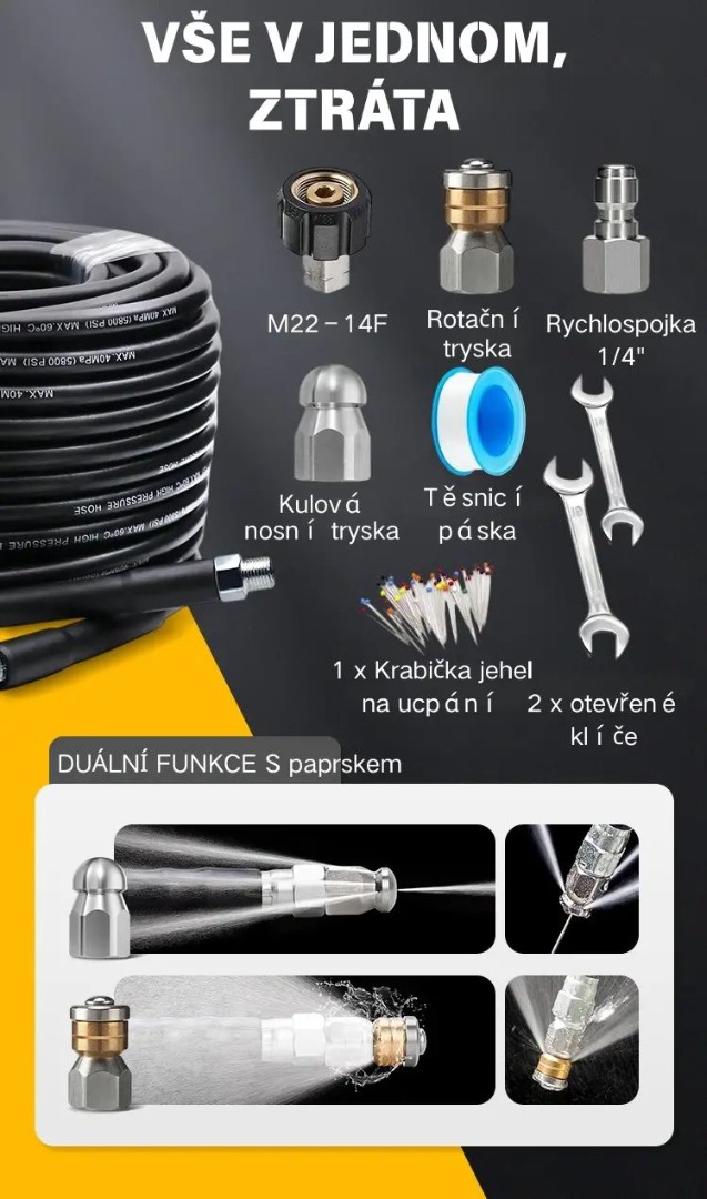 đ§NagynyomĂĄsĂș sugĂĄrtisztĂtĂł kĂ©szlet â 10 m/7 m rĂ©ztömlĆk, autĂłmosĂłba, fĂŒrdĆszobĂĄba Ă©s konyhĂĄba kompatibilis