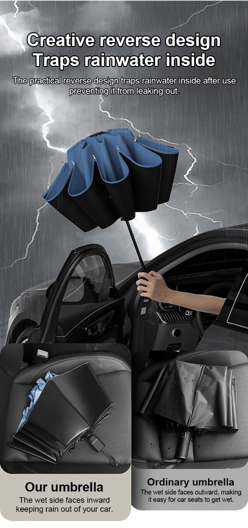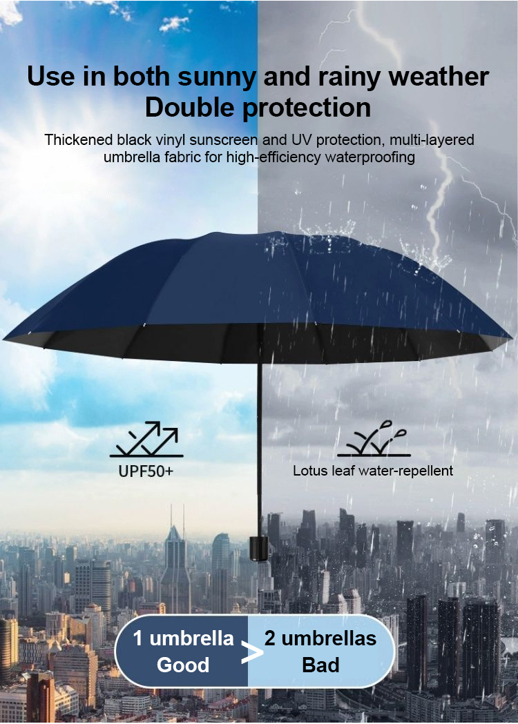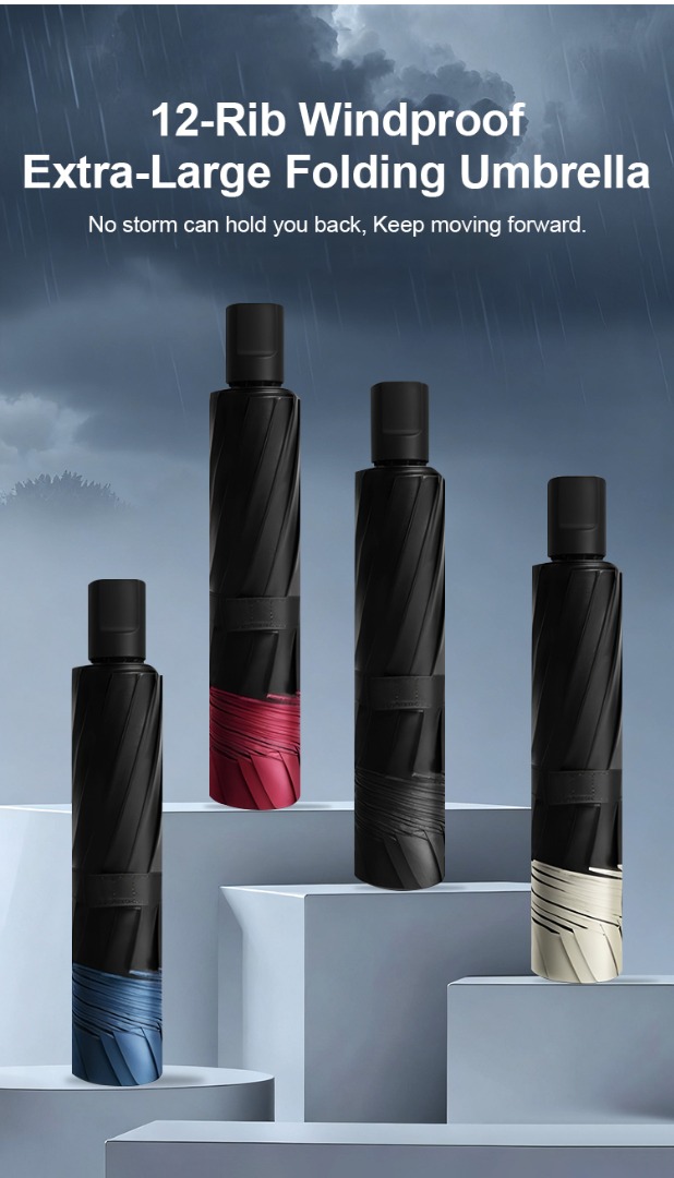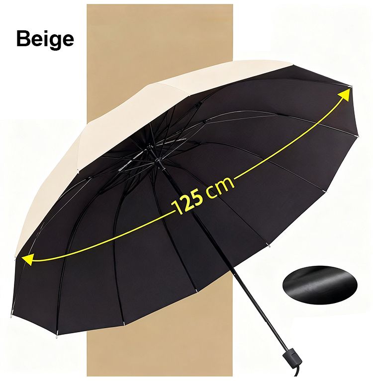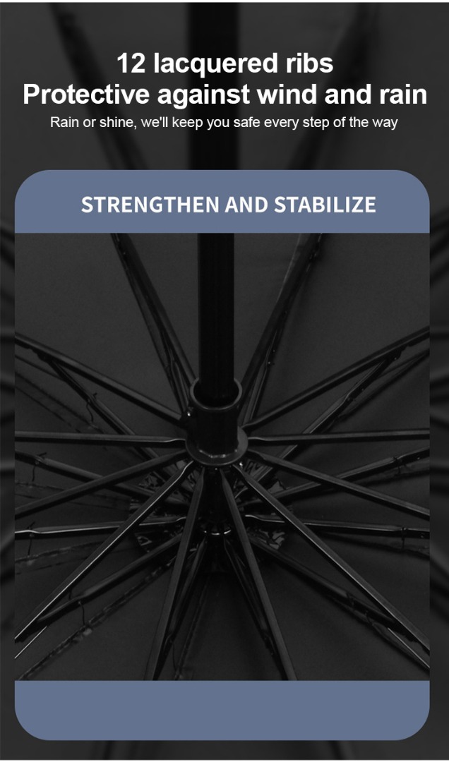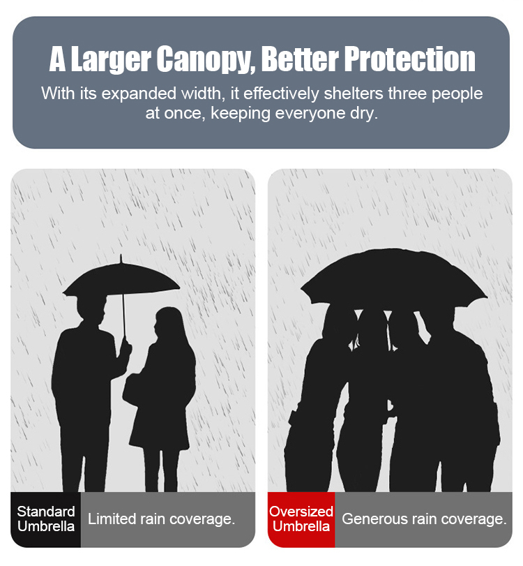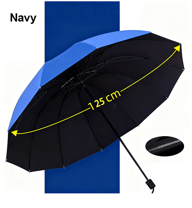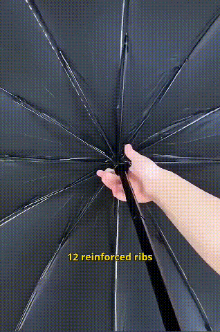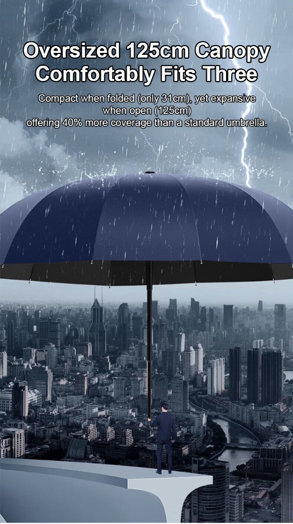 Extra nagy, 12 bordás, összecsukható, vízálló, hó- és szélálló esernyő, nagy, vastagított és megnövelt, hogy három személyt is el tudjon férni benne.