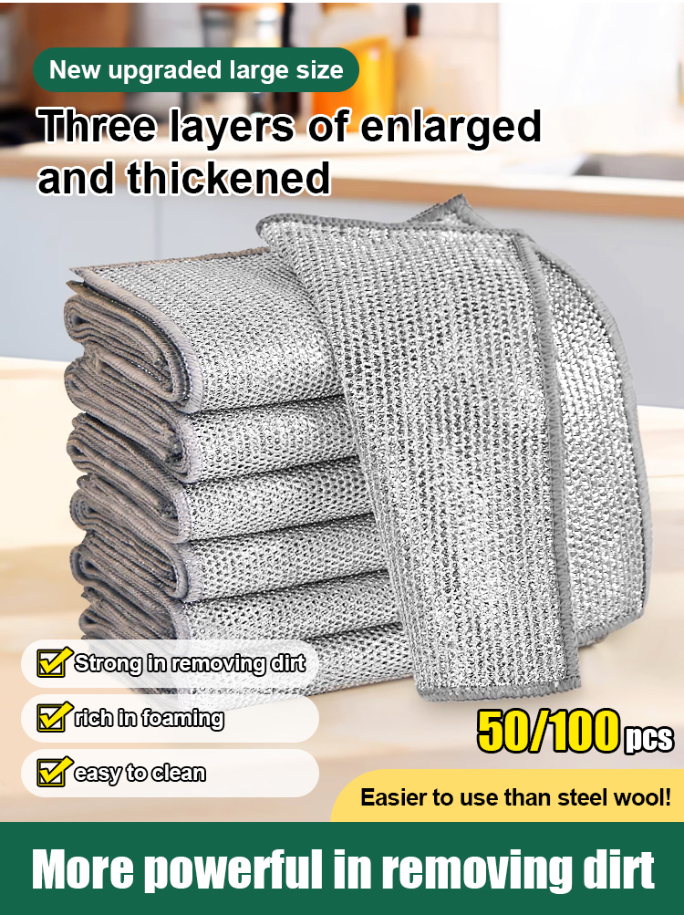 🧽【50 darab】🏠Acéldrót mosogatórongy,Nedves és száraz használatra,nem karcolja az edényeket!Időt és energiát spórolsz, a konyha tisztítása gyerekjáték!