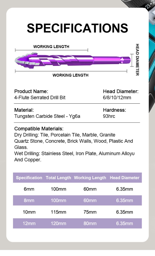 đ§°âïžă6-12 mmăĂj, fogazott volfrĂĄm-karbid ötvözetbĆl kĂ©szĂŒlt fĂșrĂłfej, Ă©les Ă©s kopĂĄsĂĄllĂł, alkalmas mind nedves, mind szĂĄraz fĂșrĂĄshoz otthonfelĂșjĂtĂĄs sorĂĄn.
