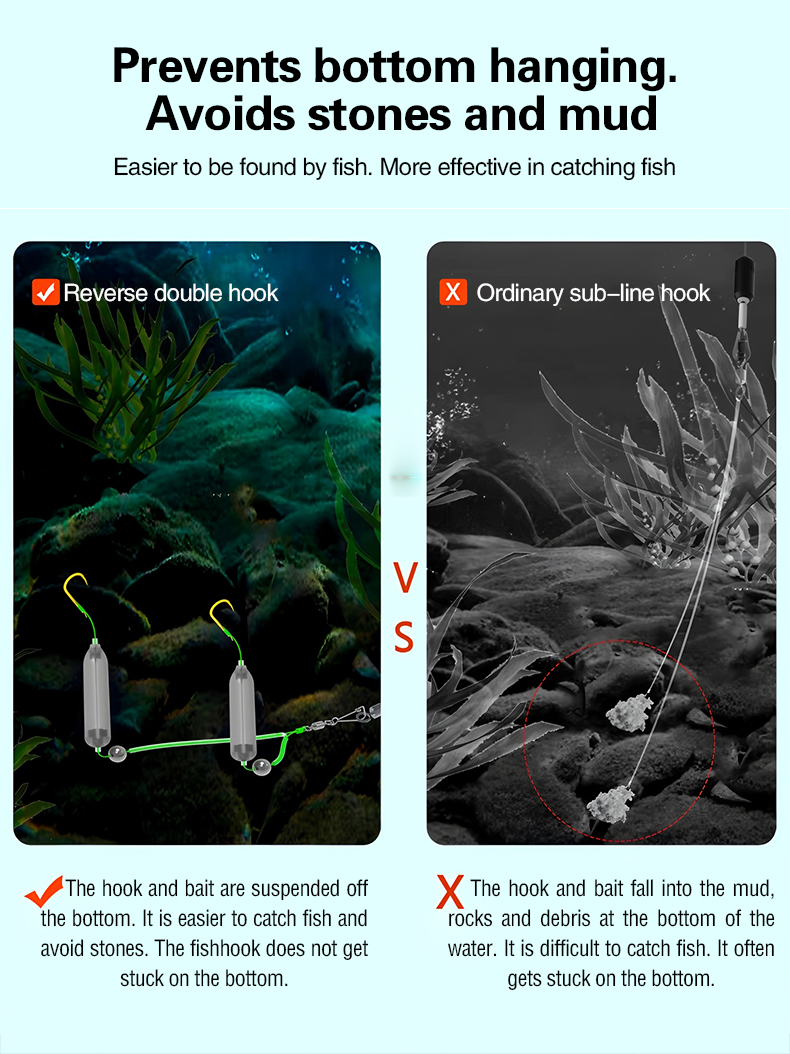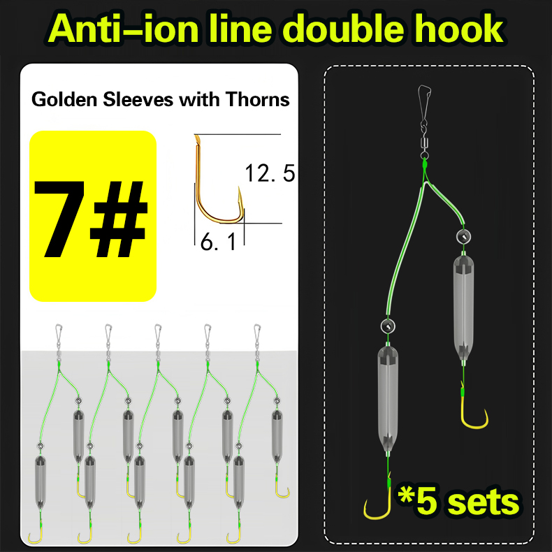 🎣【Dupla horog】1 db 5 darabos🎣 készletFordított Aljú Dupla Horogú Horgászzsinór Készlet