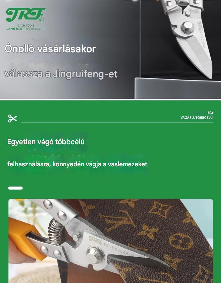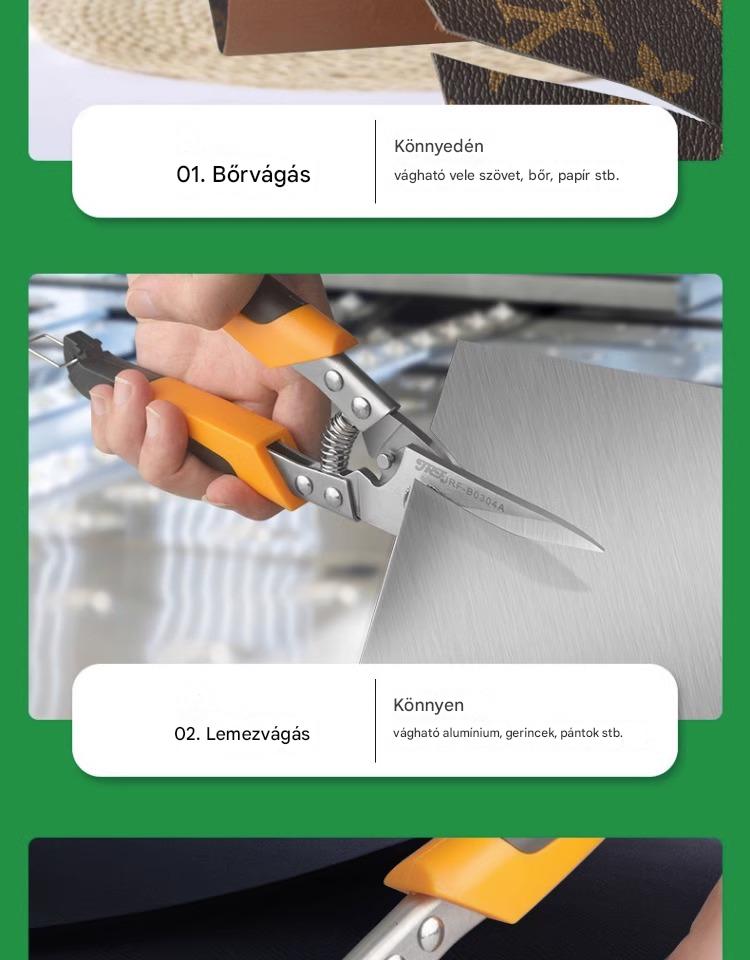(Ipari olló) Professzionális rozsdamentes acél olló, nagyon éles, vaslemezeket, például papírt vág, munkaerő-takarékos kialakítás, 1 mm-en belül vágja a vaslemezeket